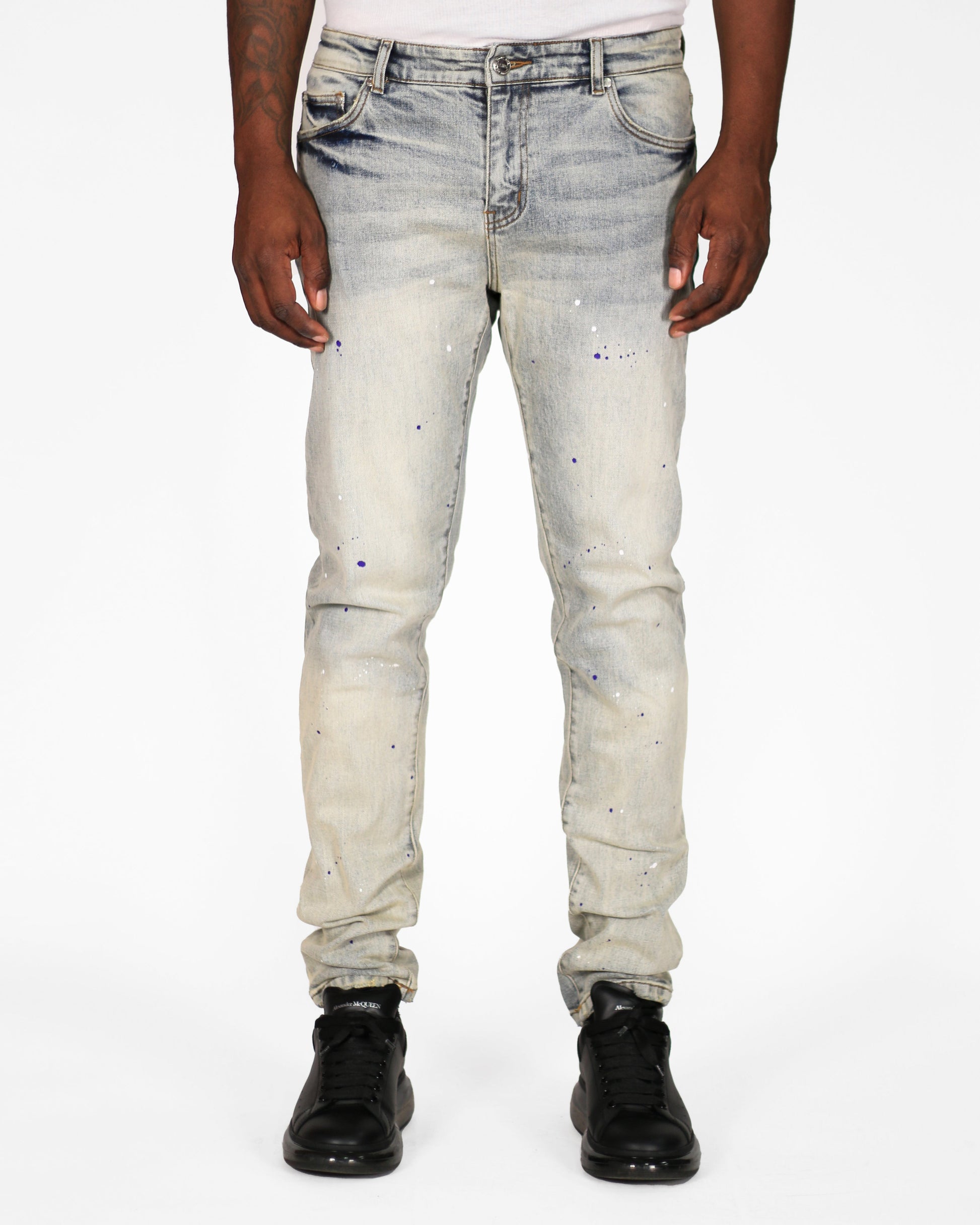 Step into a blend of nostalgia and modernity with our Timeless Fusion Jeans. These vintage-inspired light blue jeans boast a faded wash for that worn-in look, and they're artfully adorned with paint splatter details, adding a touch of creative flair. Embrace the essence of classic denim paired with contemporary aesthetics.
