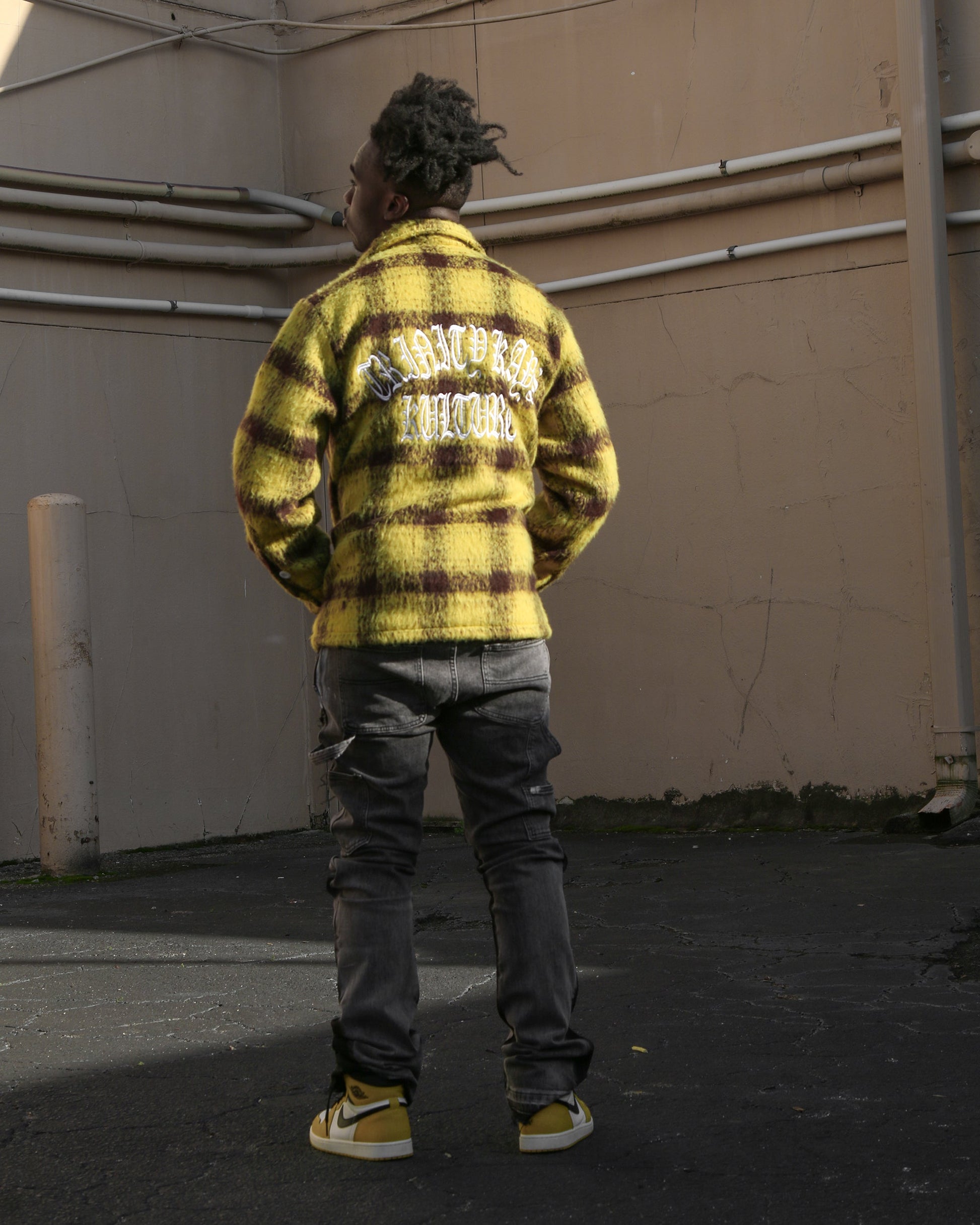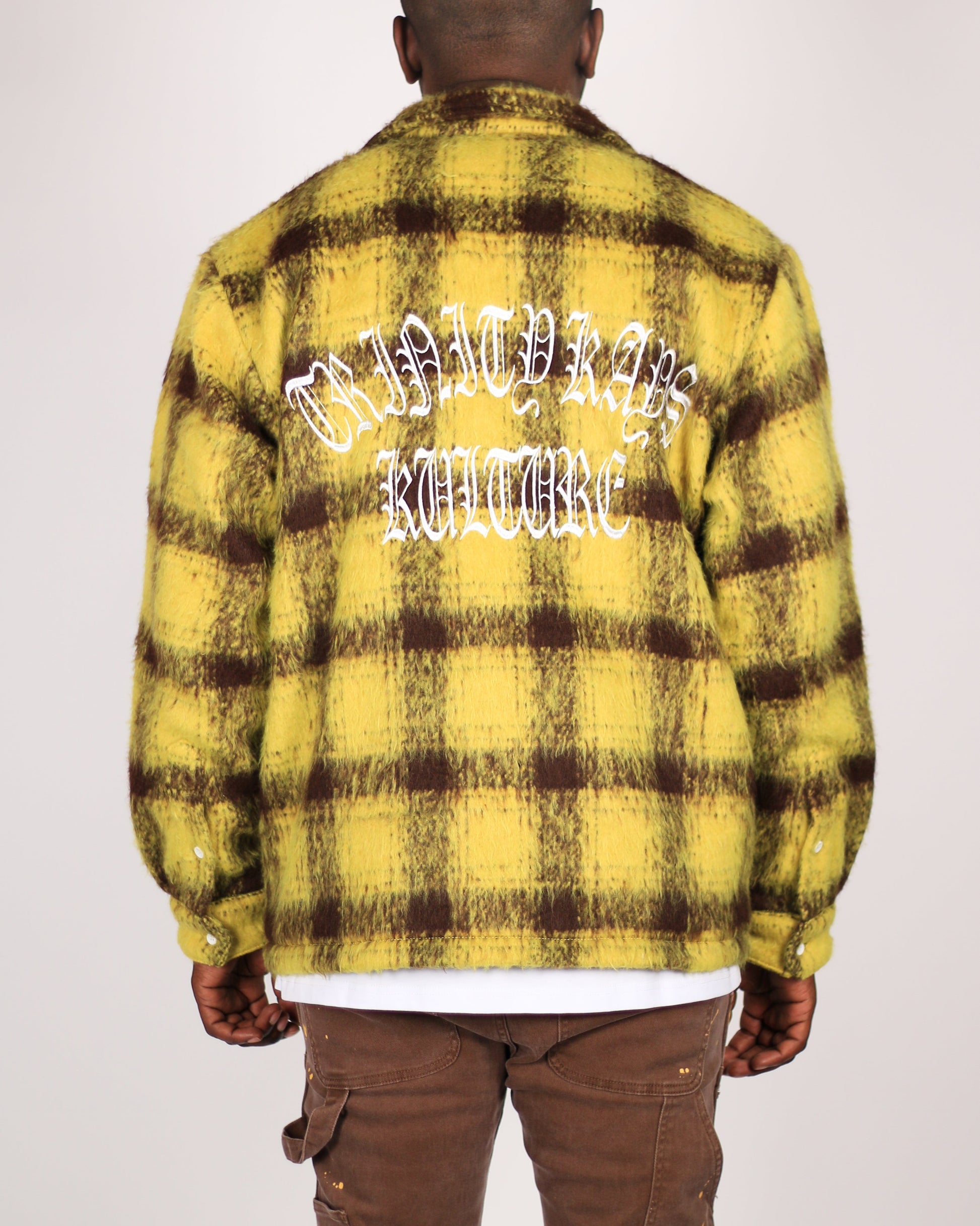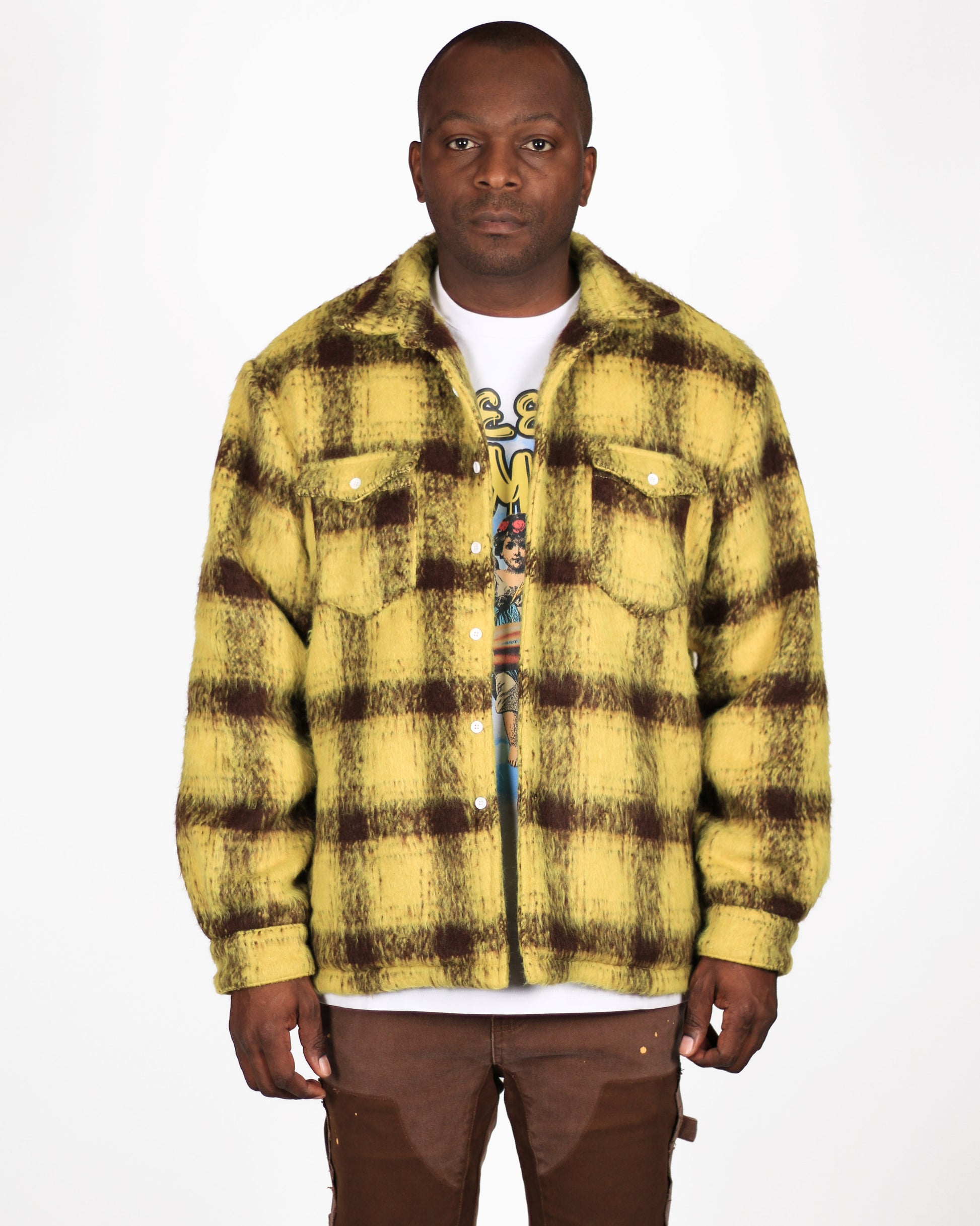 Trinity Kays Kulture Zimba Mohair Shirt Jacket, Yellow/Brown Plaid